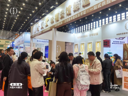 而在这场璀璨盛会中,一抹 “艾” 的亮色格外夺目 —— 艾灸品牌老艾堂,以耳目一新的形象,大气轻奢的展位,在一众美业品牌中打破常规、脱颖而出,成为全场当之无愧的 “最亮的崽”!展会期间,老艾堂展位前始终人头攒动,咨询热潮此起彼伏,每一个驻足的身影、每一次热切的问询,都印证着品牌的独特魅力。